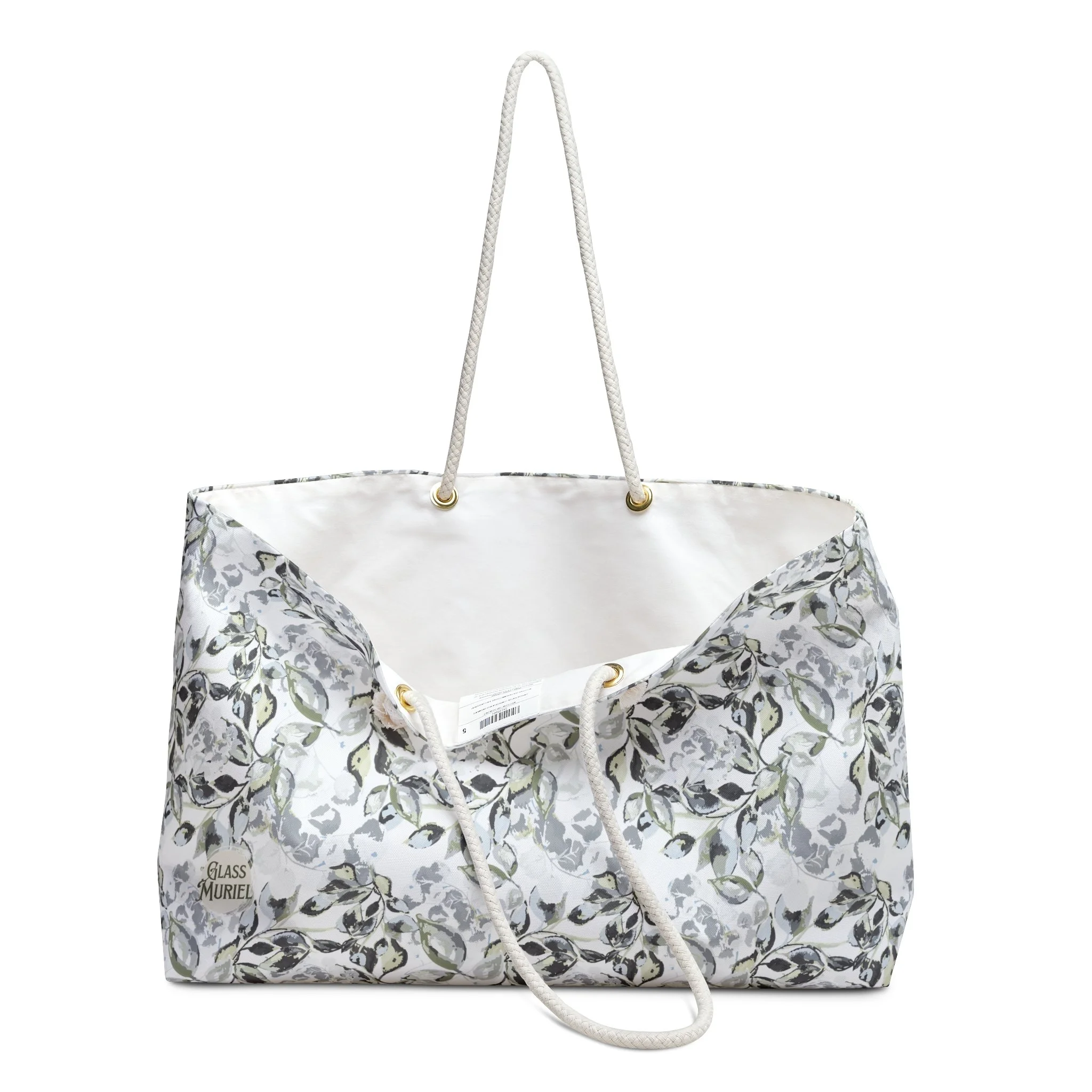 - Features durable 27" long cream-colored cotton rope handles with gold grommets for a stylish yet functional touch.