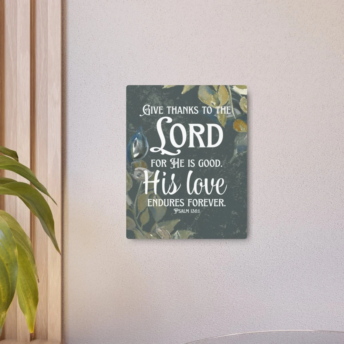 This Metal Art Sign features a scripture verse on thankfulness with a beautiful leaf watercolor background. It adds a touch of elegance to any space and serves as a constant reminder to be grateful. Perfect for those who appreciate meaningful decor and want to infuse God's Word into their home. Ideal for Christian holidays, home decor enthusiasts, and those who value gratitude.