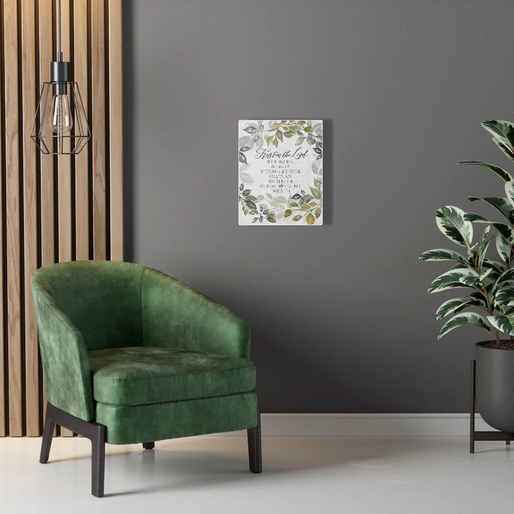 I love to put verses around my home as a constant reminder of where my hope comes from. This was actually the idea that began my endeavours with putting my art together with home decor items. I wanted to elevate my handwritten pieces of paper to something more permanent. So this brings Vine&Branch together with words that bring me constant direction and encouragement on a canvas. I personally have this in the 16x20 size in my living room. It is my desire they would bring you hope and direction also!